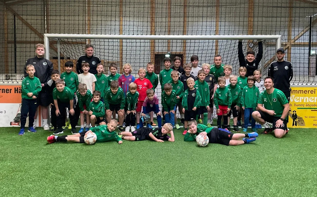 Am vergangenen Samstag starteten unsere Kleinfeld-Nachwuchsmannschaften der G-bis D-Junioren mit Trainerteams und einer Vielzahl von Eltern zum wiederholten Male in den Sportpark Elsterberg, um das scheidende Fußballjahr 2025 gemeinsam zu lassen. Über 30 Nachwuchsakteure durften sich auf den beiden Indoor Soccer-Courts 90 Minuten austoben und im Turniermodus messen.